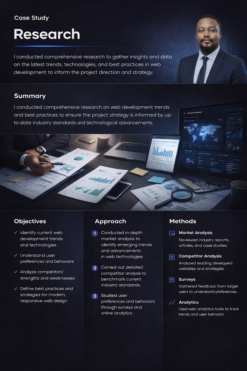 Defined goals, audience, and positioning while analysing modern portfolio standards.